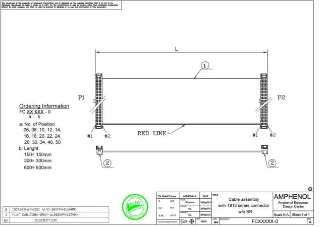 FC16150-0 AMPHENOL Cablu panglică cu conectori IDC; 16x28AWG; Pas pini: 2,54mm