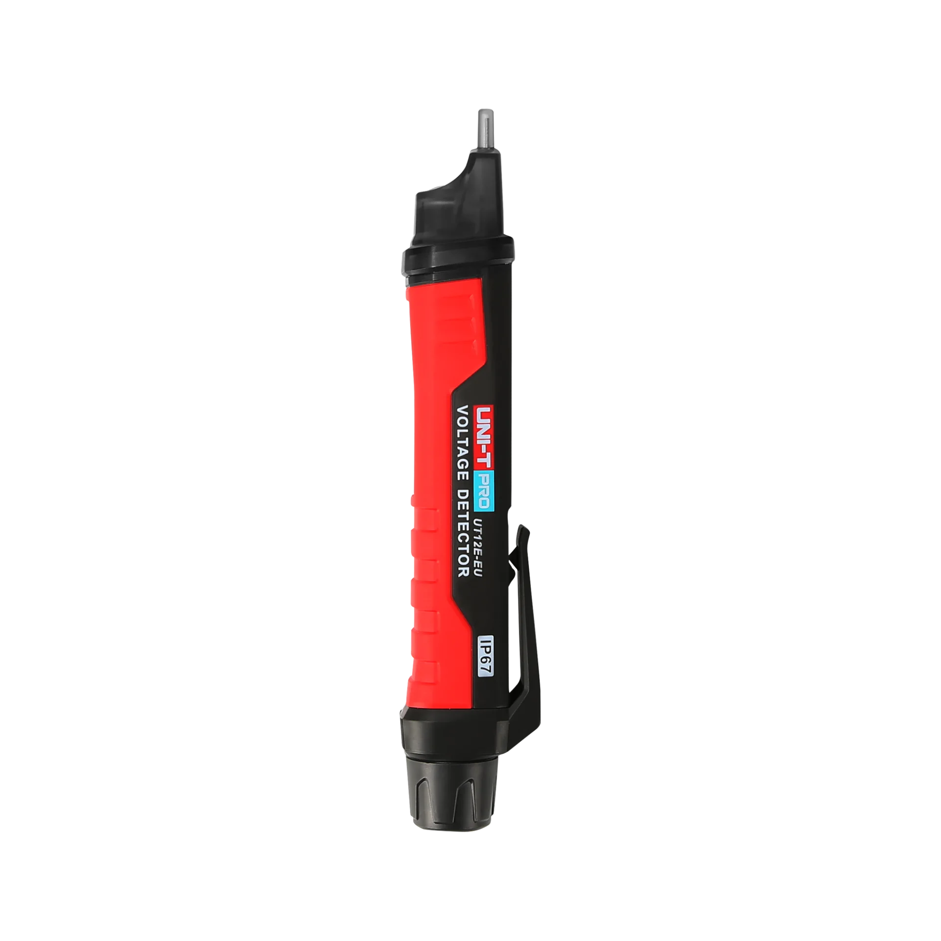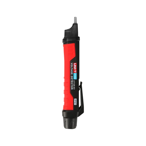 UT12E-EU este un detector profesional de tensiune AC fără contact, cu lampă încorporată și funcție de avertizare sincronă acustic-optică. În modul de joasă tensiune, este potrivit pentru testarea motoarelor de joasă tensiune (<90V), a sistemelor audio, a mașinilor de sudură cu arc, a iluminatului minelor subterane, a cablurilor cu un strat izolator gros și a altor dispozitive slab electromagnetice. În modul de înaltă tensiune este posibil să se utilizeze pentru testarea distribuției electrice în intervalul (90 ~ 1000 V), tablouri electrice, aparate electrice, sisteme trifazate.